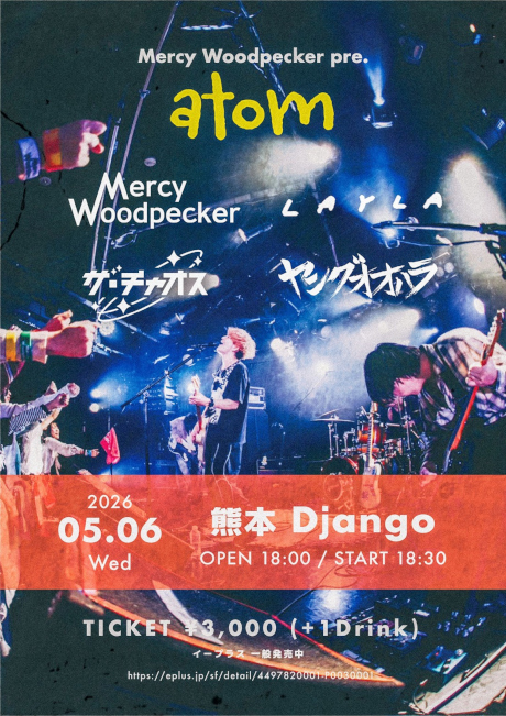 OPEN 18:00 / START 18:30 - ADV¥3,000 / DAY TBA ※ 入場時に別途ドリンクチケット代 ¥600をお支払頂きます。